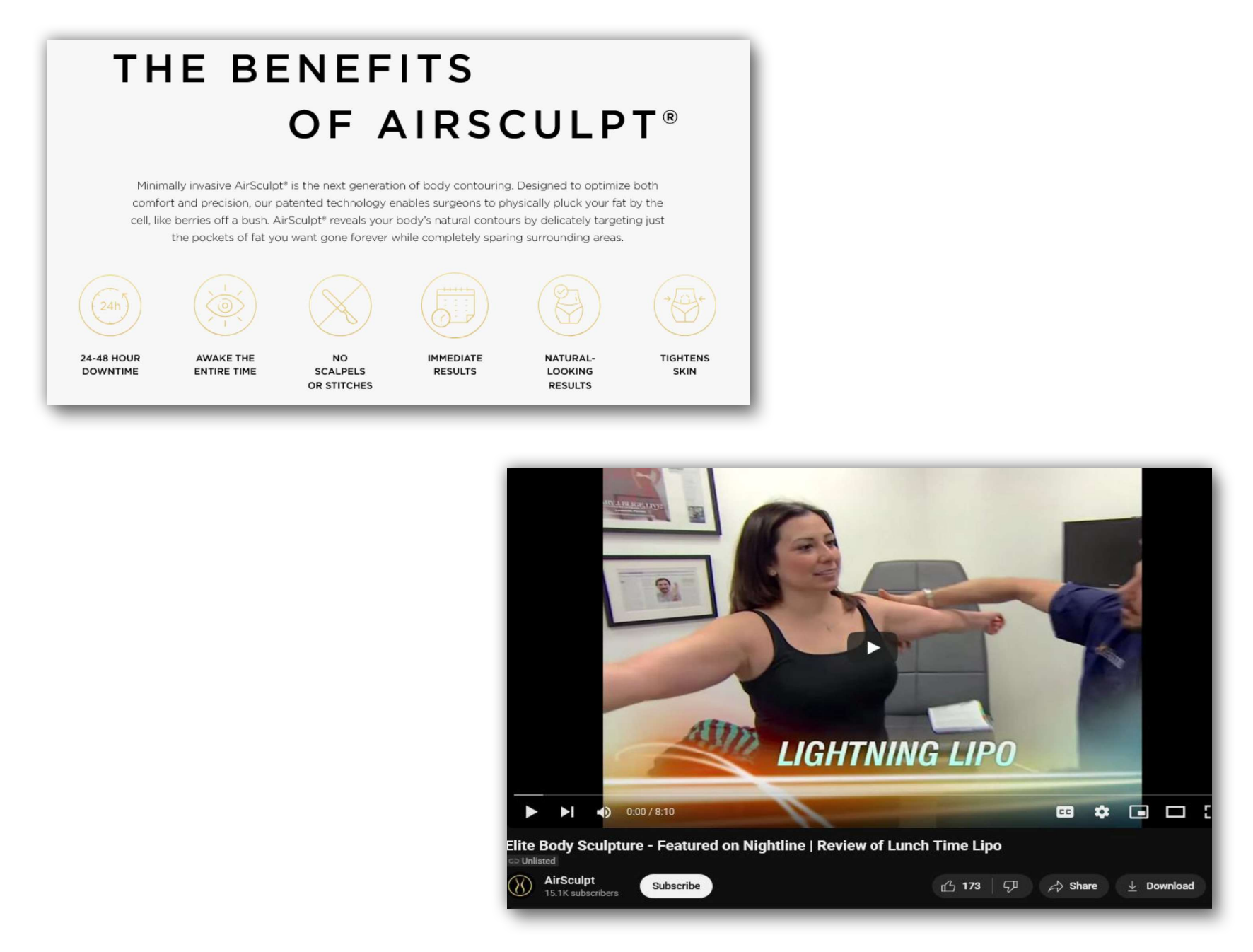 Elite Body Sculpture promotes its AirSculpt brand as “Lunch Time Lipo” with minimal recovery time, according to a lawsuit filed this year by patient Caitlin Meehan. The suit accuses the company of false advertising for allegedly minimizing the risks of the procedure, allegations the company denies. (Screengrabs from “Meehan v. EBS Pennsylvania, PLLC et al.” Court of Common Pleas, Philadelphia County)